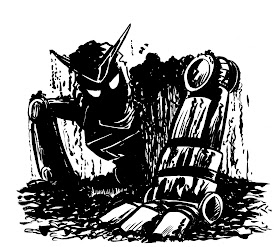 I drew this during Graduation ceremonies on the back of a folder, still no color. Influenced I'm sure by this guy's art I've been admiring.